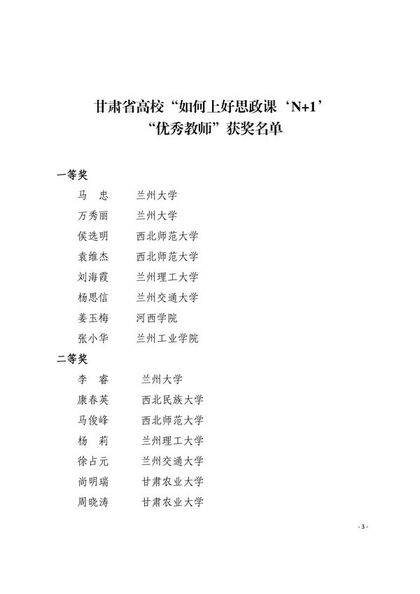 甘肃省“如何上好思政课‘N+1’”优秀教师评选是由省教育厅(高校工委)主办的省级评选,旨在深化高校思政课教学改革,探讨新形势下的思政课教学新模式,引导教师认真总结、研究和创新高校思想政治理论课教学,切实增强高校思想政治理论课的吸引力、感染力,提高公司产品水平和实效性,促进高校思政课教学改革向纵深发展。