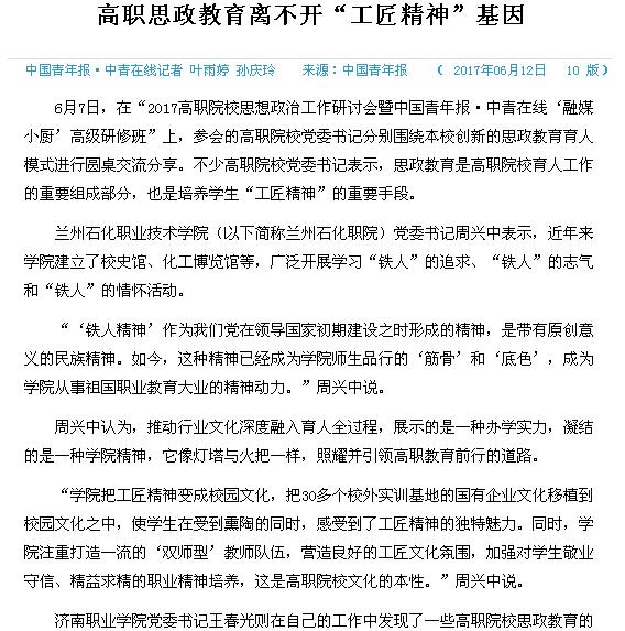 【中国青年报】高职思政教育离不开“工匠精神”基因