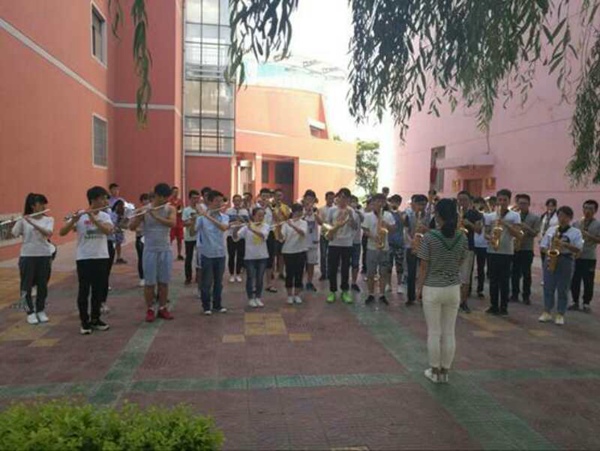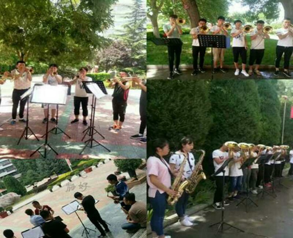 为积极配合做好2017届迎新工作,公司老员工军乐团全体成员从暑假就开始准备,每天刻苦训练,激情高涨,他们用行动表达着对新生的热烈欢迎。