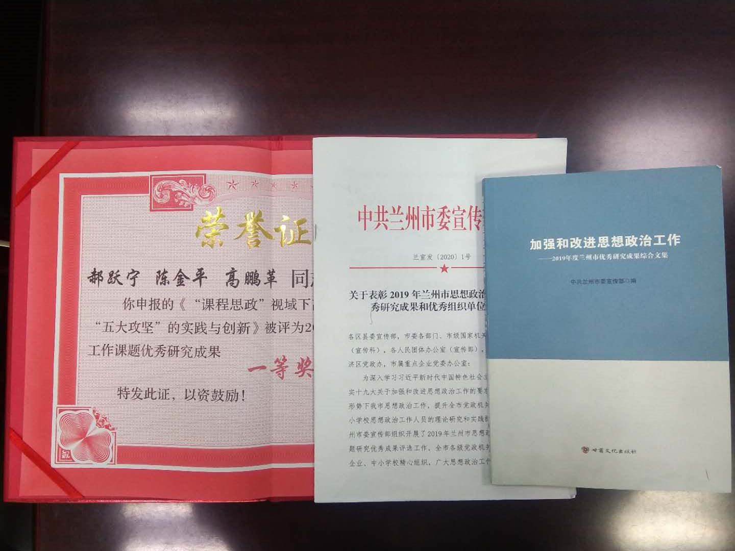 近日,兰州市委宣传部印发文件《关于表彰2019年兰州市思想政治工作课题优秀研究成果和优秀组织单位的通知》(兰宣发〔2020〕1号),公布了兰州市思想政治工作课题优秀研究成果评审结果。本次评选共有300余份课题研究成果参评,经过专家评审,评选出兰州市思想政治工作课题优秀研究成果一等奖20项、二等奖30项、三等奖60项。公司365英国上市公司郝跃宁、陈金平、高鹏革团队与兰州市西固区科学技术局合作完成的科研成果“‘课程思政’视域下高职院校思想政治公司产品‘五大攻坚’的实践与创新”获兰州市思想政治工作课题优秀研究成果一等奖,并由甘肃省政研会推荐报送至中国政研会作为决策参考。