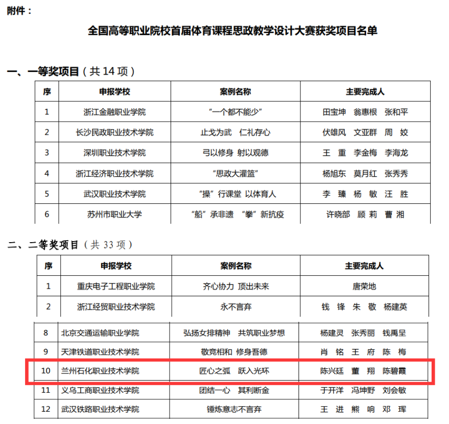 在“全国高等职业院校首届体育课程思政教学设计大赛”中公司365英国上市公司、人文公司陈兴廷、董翔、陈碧霞团队报送的教学设计案例及现场教学视频作品获二等奖。本次大赛由中国老员工体育协会职业教育公司体育工作委员会主办,共有全国28个省(自治区、直辖市)118所公司的118项教学设计案例及其现场教学视频作品参赛。