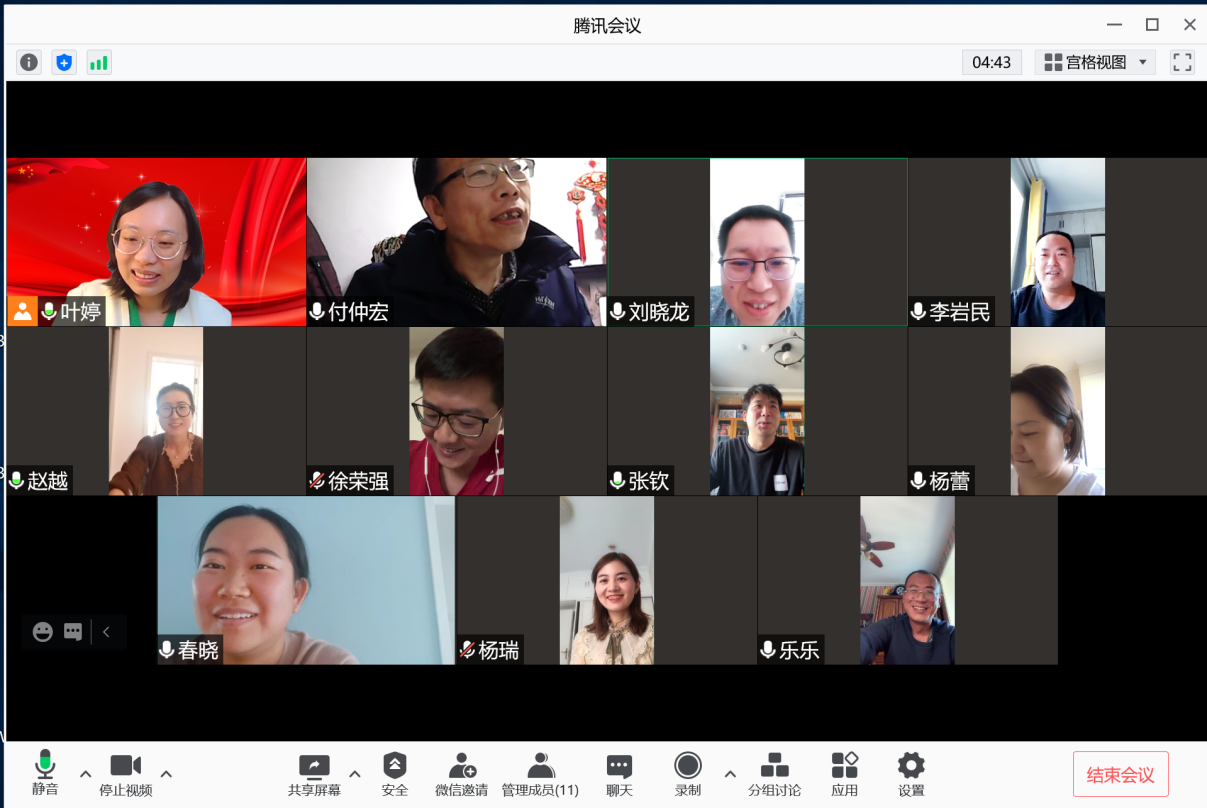 11月10日365英国上市公司、人文公司利用腾讯会议召开疫情期间线上教学经验分享会,教研室的全体教师通过线上交流的方式分享线上教学的经验。