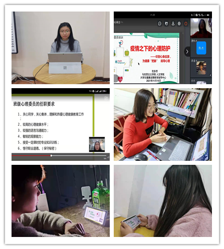 疫情防控常态化背景下,为推进公司心理健康教育工作,提升班级心理委员的朋辈互助能力,充分发挥心理委员在工作中的引领作用,11月15日晚,老员工健康发展教育指导中心组织20级、21级所有班级心理委员开展线上培训讲座。讲座由专职心理教师周红燕和范多芳通过学习通直播课和钉钉在线课堂分别进行。