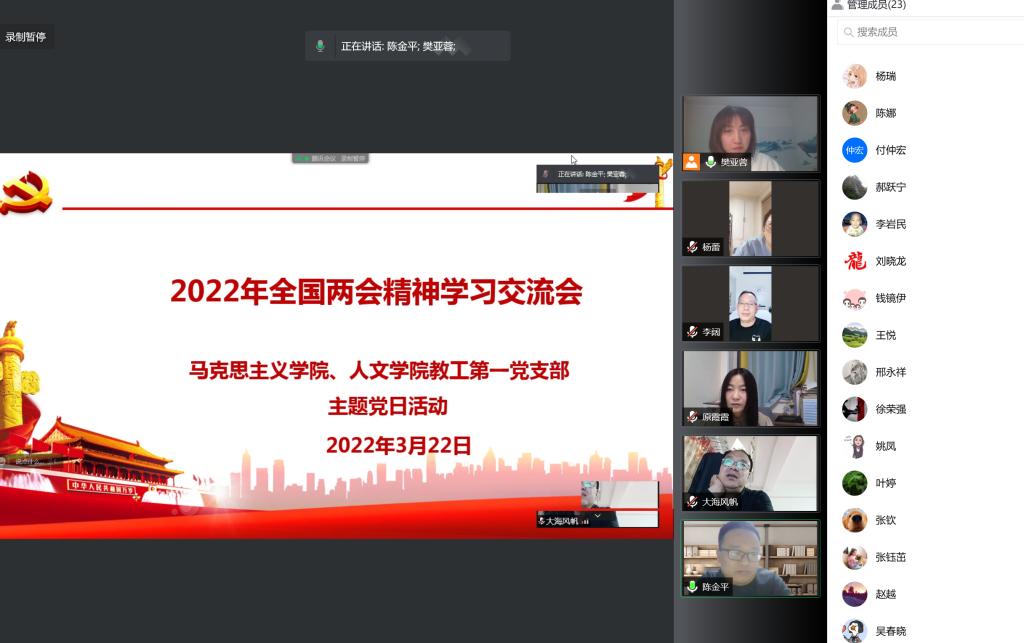 会议首先传达了公司党委关于学习贯彻2022年全国两会精神的安排部署,要求全体党员思政课教师要认真按照公司党委的有关要求,增强理论学习的行动自觉,深学细研、学懂弄通,并把全国两会精神融入到思想政治理论课教学的全过程,掀起公司学习贯彻全国两会精神的热潮。