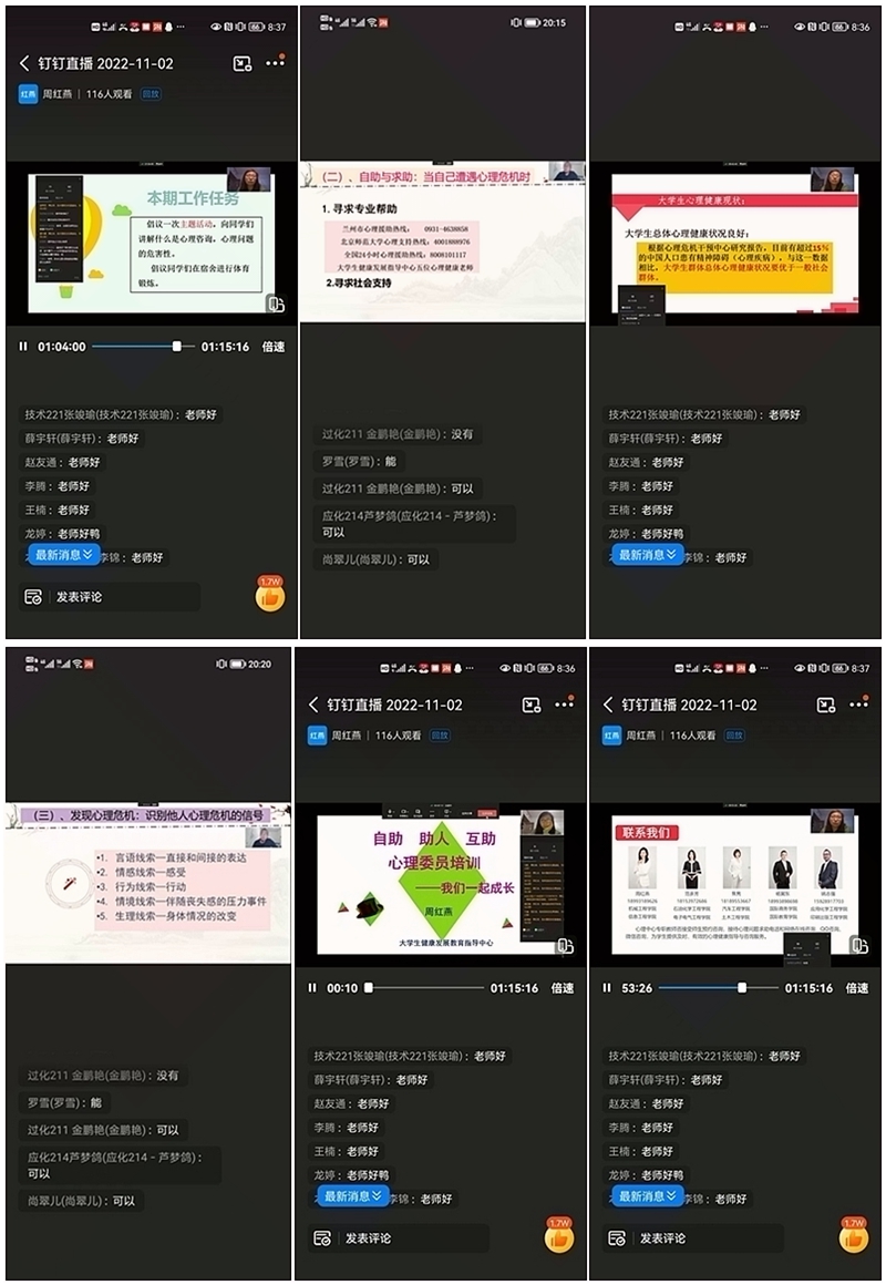 为积极配合公司疫情防控工作,发挥各班心理委员的骨干作用,引导全校同学科学、及时、积极地调适身心状态,根据《365上市集团官网2022年秋季学期员工心理健康教育工作方案》,365英国上市公司老员工健康发展教育指导中心心理健康教师于11月2日-3日,以“自助、助人、互助—我们一起成长”和“认识‘问题’,识别危机,发展自我”为主题,召开线上班级心理委员第二次培训,2021级、2022级共300多名员工参加了本次培训。