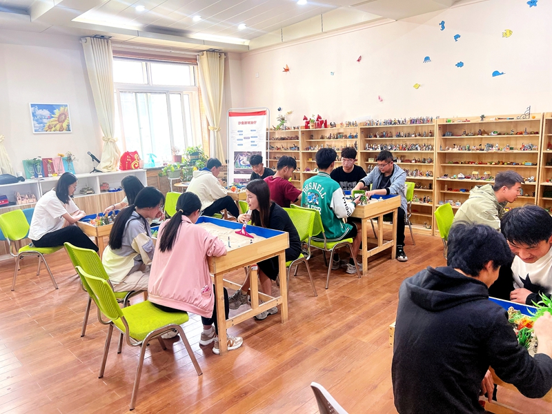 “一沙一世界”,沙游活动中,同学们通过非语言的沟通,经历了冲突、磨合、坚守和包容的过程,觉察了自己在人际交往中的自我角色定位、期待渴望和行为模式。同学们纷纷表示,在团体沙盘体验过程中能够切实感受人际关系中合作、理解、包容、接纳的重要性;能够理清思路,感受从不同角度看待问题带给自己的释然与放松;能够帮助自己释放压力,调节情绪;能够反映自己的期许、兴趣爱好以及内心想法;能够帮助自我了解,找回初心;能够体悟人际交往中沟通理解的深刻含义,从而最终达到自我觉察,创造心灵归属感的效果。