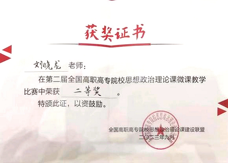 闭幕会上举行了全国高职高专微课比赛颁奖仪式。公司365英国上市公司刘晓龙老师、孟彦君老师分别荣获第二届全国高职高专院校思想政治理论课微课教学比赛二等奖、三等奖的好成绩。